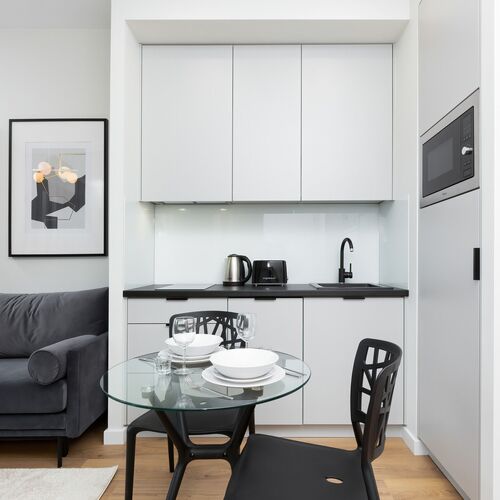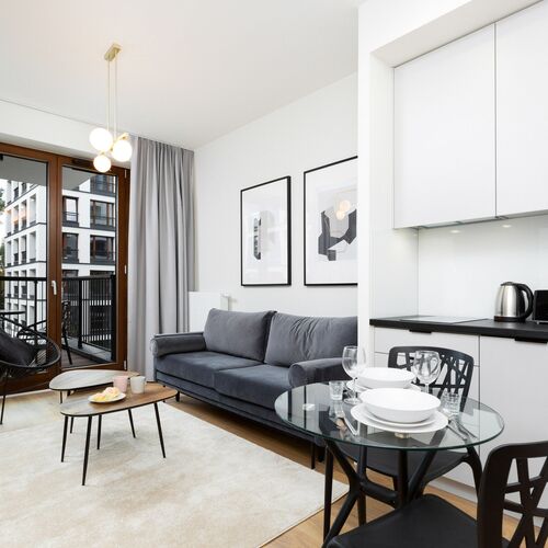 The apartment is a perfect starting point to explore Warsaw. The Warsaw Rising Museum is just 10-minute walk away from the studio (850 m), and the iconic shopping center Złote Tarasy – 20 minutes away (1.5 km). The area has also great access to other districts of Warsaw: the closest metro station, Rondo Daszyńskiego, is less then 1 km from the apartment, and on the neighboring streets there are many bus stops. The public transport to the Old Town takes just 15 minutes. For more eco-friendly and even faster solutions, there’s a city bike rental next to The Warsaw Rising Museum.