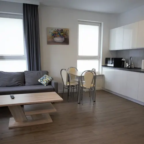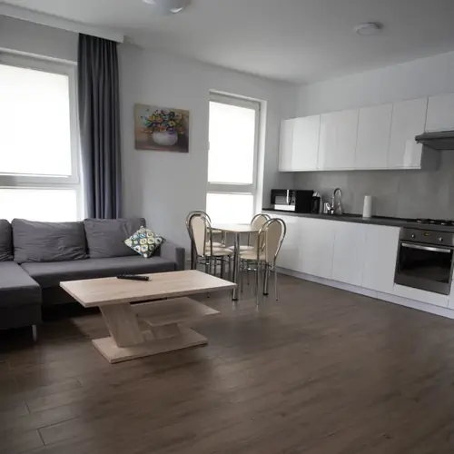 Rooms, services Two comfortably furnished rooms are offered by Apartamenty MGM Legionowo to guests looking for accommodation in Legionowo. Your small pet is also very welcome during your stay at the apartment. An additional fee applies to taking your pet here. If neccessary, you may park your car at the parking place of the apartment for free. At the apartment you may go online via wireless Internet connection (WiFi). All rooms are equipped with a separate toilet and bathroom. You can find the exact list of services provided by Apartamenty MGM Legionowo (including those for extra fees) and the exact equipment of the rooms on the information sheet below and on the information sheet of the respective rooms.