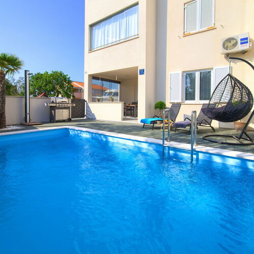 Welcome to Holiday Apartment NB, a modernly equipped apartment located on the ground floor of a multi-apartment house in the picturesque tourist village of Šilo, on the Island of Krk. The apartment is just 600 meters from the beach, offering you a peaceful setting while keeping you close to the crystal-clear Adriatic Sea. In addition to its excellent location, the apartment features a private pool where you can cool off and unwind on the spacious terrace with sun loungers.
