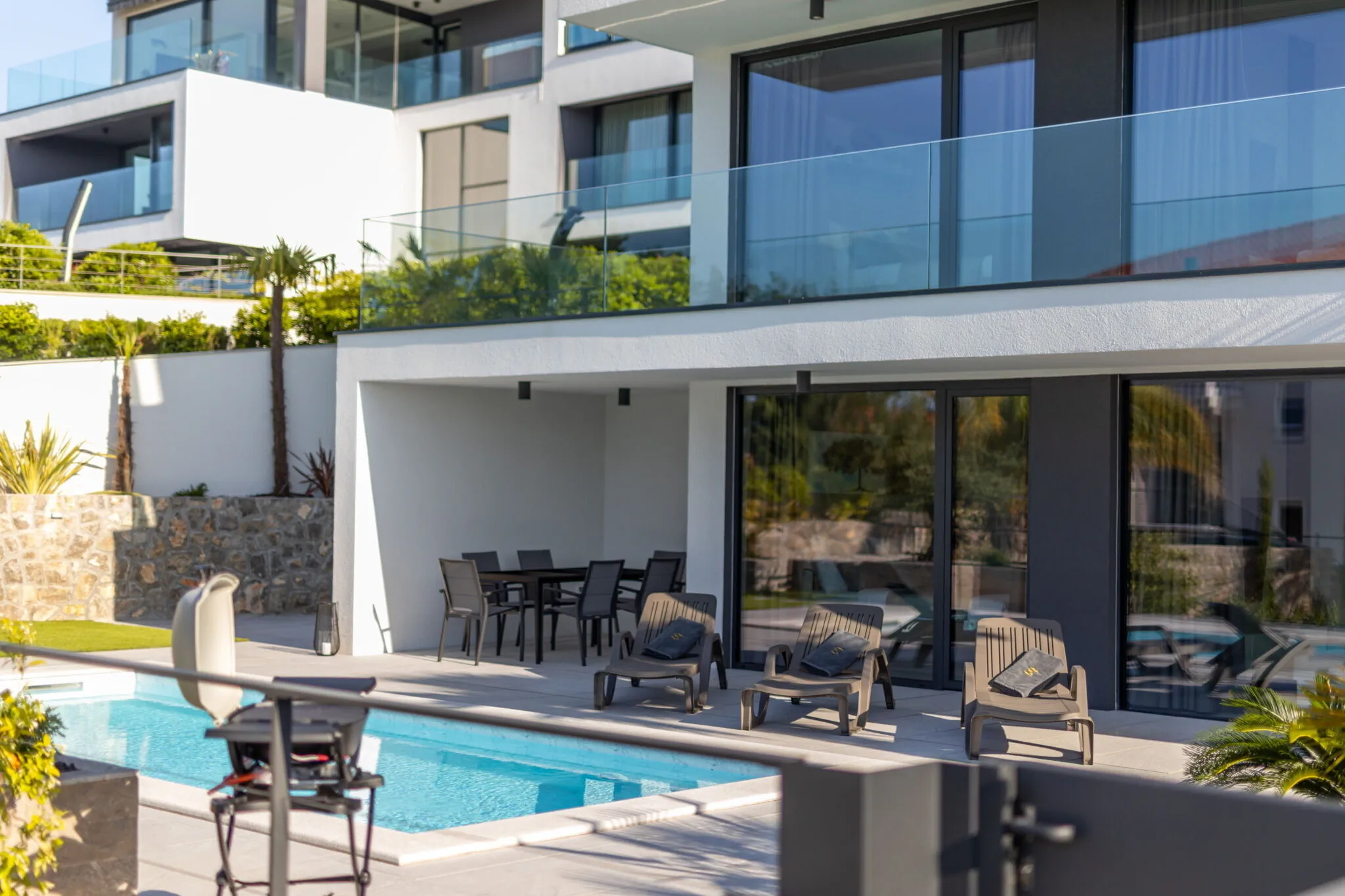 Villa Z is located in the immediate vicinity of the beach, only 135m. The villa has 3 apartments. The apartment on the ground floor has the only swimming pool and can accommodate a maximum of 6 people. The apartment on the 1st floor and 2nd floor do not have a swimming pool and can accommodate 6-8 people.