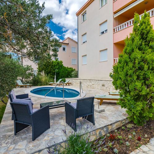 Rooms, services Guests looking for accommodation in Okrug Gornji are welcome to book nicely furnished rooms at Apartments Melita Okrug Gornji. If neccessary, you may park your car at the parking place of the apartment for free. You may also enjoy relaxing wellness services on the spot, please check the information sheet for further details. Air-conditioning is in operation in all rooms, ensuring that you will be feeling good also on warm summer days. A separate bathroom and toilet are available to all rooms. The exact equipment of a room and the exact list of available services of Apartments Melita Okrug Gornji can be read on the information sheet below and on the information sheet of the selected room.