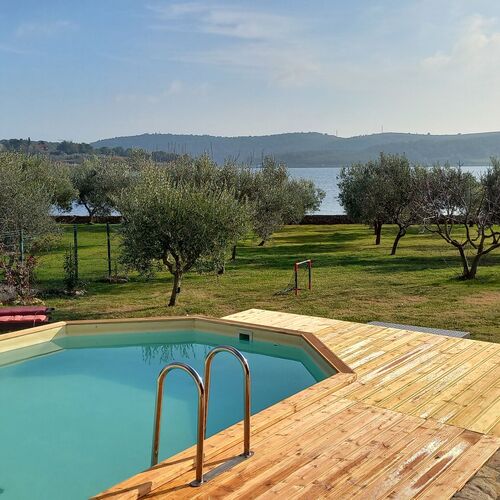 The house is fully equipped with everything necessary for a high standard of living: air conditioning, free internet, Smart TV. Next to the house there is a swimming pool with a terrace where there is a whirlpool which is covered and can be closed, a barbecue, a table for 6 people and deckchairs. From that part of the house there is a fantastic view of the sea and the olive grove. The maximum depth of the sea in the bay is 150 cm. Ours is a convenient beach to enjoy. Real swimmers can find a perfect spot 600m from the house.