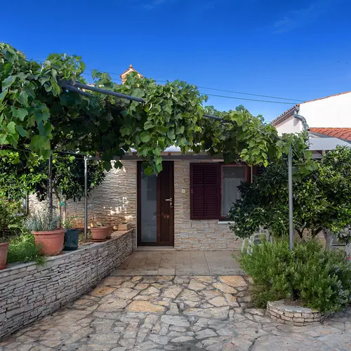 Peaceful area, fenced closed courtyard, terrace and free WiFi are the main attractions of this bungalow. Bungalow is located 600m from the center and sandy beach is only few minutes by car away. It is completely furnished for 2-4 people. On the main floor are located living room with sleeping possibility, kitchen, bathroom and terrace. Bedroom for 2 persons is upstairs and it is air conditioned. Kitchen is fully equipped and contains fridge, gas stove, oven, dishes and coffee maker. Guests also have SAT/TV, sheets and towels. Parking is inside bungalow's courtyard. Bungalow is situated behind owner's family house. The owner has a dog so pets are not allowed.