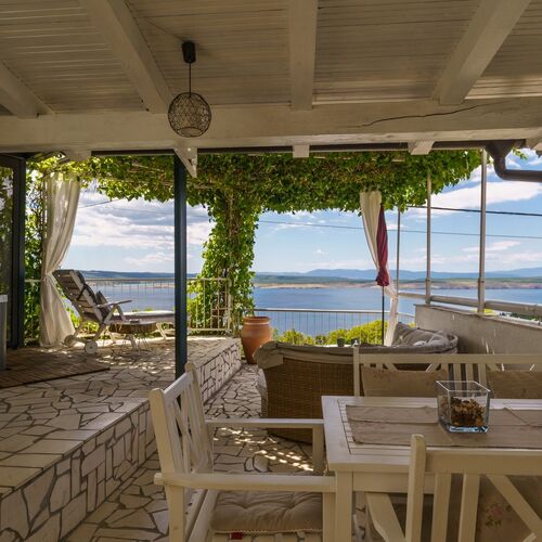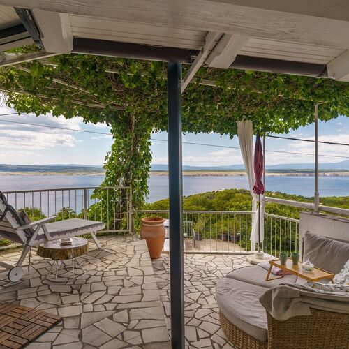 This traditional semi-detached house, which was built in 1900 and renovated in 2011 in a Mediterranean style, offers you an unforgettable view of the Kvarner Bay and the opposite island of Krk.
