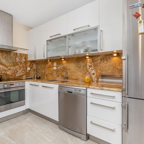 This seaside apartment with an area of 54 m² can accommodate 6 people and is an excellent place for a family or group of friends. Bright and cozy interiors encourage relaxation and rest. The apartment consists of a living room with a kitchenette, a bedroom, a bathroom with a shower, and a balcony. The living room features two comfortable sofa beds where four people can sleep. Large windows let in plenty of natural light, emphasizing the brightness and spaciousness of the room. Additionally, the balcony is equipped with garden furniture, making it an ideal place to enjoy your morning coffee outdoors. The functional kitchenette, equipped with high-quality appliances, is a perfect place for preparing home-cooked meals. The bedroom with a comfortable double bed ensures a restful sleep. Evening entertainment is provided by multimedia equipment, such as a flat-screen TV with Smart TV technology and free Wi-Fi access. The apartment is also equipped with a washing machine, enhancing the comfort of long-term stays. Guests will find a complimentary set of toiletries, towels, and bed linen on-site. For those arriving by car, there is a parking space in the underground garage.