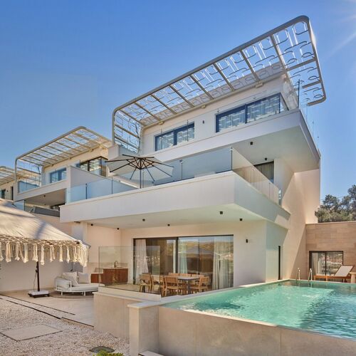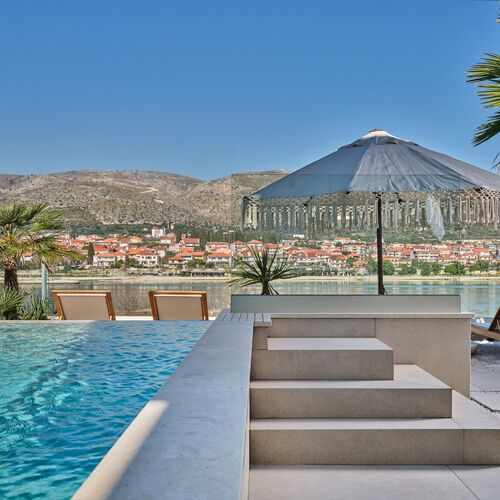 The beautiful Mistral Villas are perfectly situated in the charming UNESCO heritage town of Trogir, just 10 meters from the crystal-clear sea. This stunning waterfront location offers guests direct access to the idyllic Dalmatian coastline and is nestled right beside the prestigious Brown Beach House Hotel & Spa.